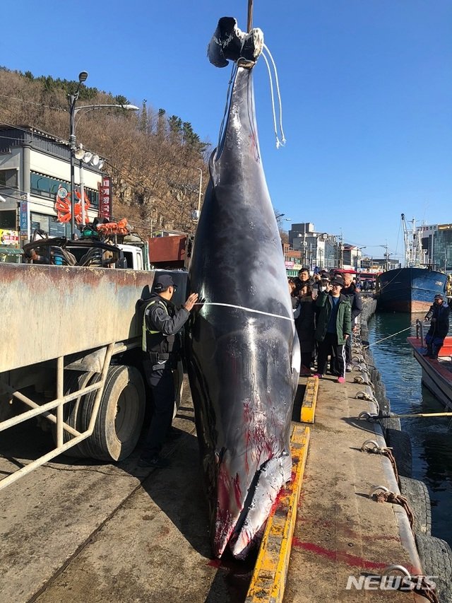 울진해경은 국립수산과학원 고래연구센터를 통해 고래 종류를 밍크고래로 확인한 뒤 작살 등에 의한 고의로 포획한 흔적이 없어 고래류 처리확인서를 발급했다.