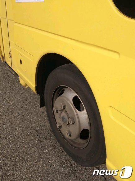 브레이크 고장 논란의 대상이 된 어린이집 통학버스 앞바퀴. 2020.1.30/© 뉴스1