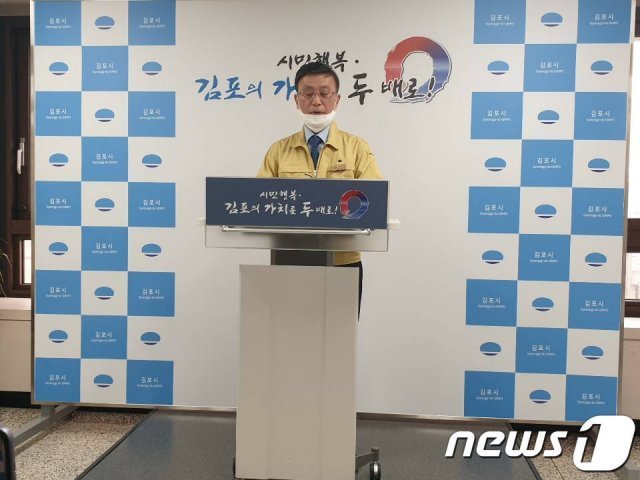 21일 오전 10시 경기도 김포시 김포시청 브리핑룸에서 정하영 김포시장이 지역 확진자 부부에 대해 브리핑하고 있다. © News1