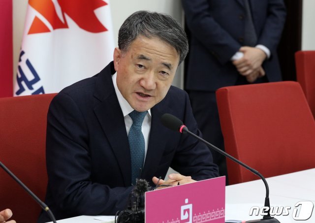박능후 보건복지부 장관이 21일 서울 여의도 국회에서 심재철 미래통합당 원내대표와 면담을 갖고 코로나19 관련 보고를 하고 있다. 2020.2.21/뉴스1 © News1