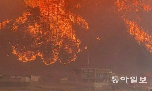 산불은 이날 오전 기준 임야 200㏊와 주택 3채, 창고 2동, 축사 3동, 비닐하우스 4동 등을 태운 뒤 계속 번지는 중이다. 돼지 800여마리도 폐사했다.