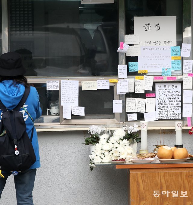 “입주민에 괴롭힘 당했다” 세상 등져… 경비실 앞 분향소에 주민 메모 가득
