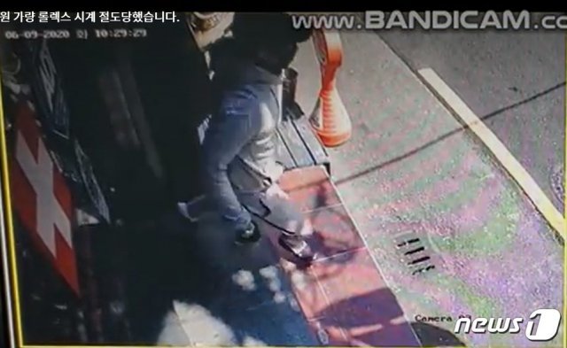 경남 창원의 한 명품시계 전문수리점에서 4000만원 상당의 롤렉스 시계를 훔쳐 달아난 용의자.(피해 업장의 CCV화면 캡쳐).2020.6.11.© 뉴스1