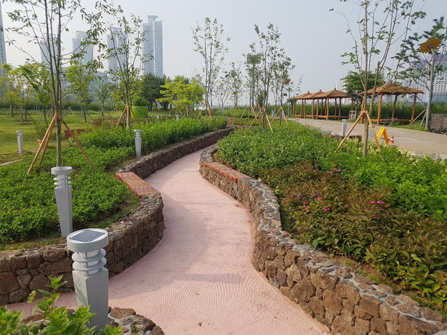 3월 공사에 들어가 동쪽 산책로(청라복합문화센터∼커낼웨이 입구) 구간에 햇빛을 가려주면서 넉넉한 그늘을 제공하는 느티나무 등 큰나무 11종, 6000여 그루를 심었다. 또 공원 이용객에게 볼거리를 제공하기 위해 떡갈잎수국 등 10종, 8500여 본의 초화를 심어 돌담길 수국원을 만들었다. 주민들이 쉴 수 있는 퍼걸러(파고라), 트렐리스, 등의자를 곳곳에 설치했다.