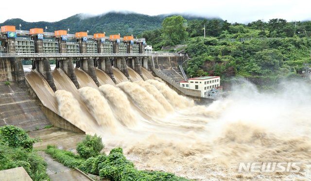 지난 1일부터 3일 오전까지 폭우가 쏟아져 비 피해가 속출하고 있는 가운데 북한에서도 많은 비가 내려 북한강으로 유입되는 수량이 증가하자 화천과 춘천의 북한강 수계 댐들이 수문을 열고 방류하고 있다.