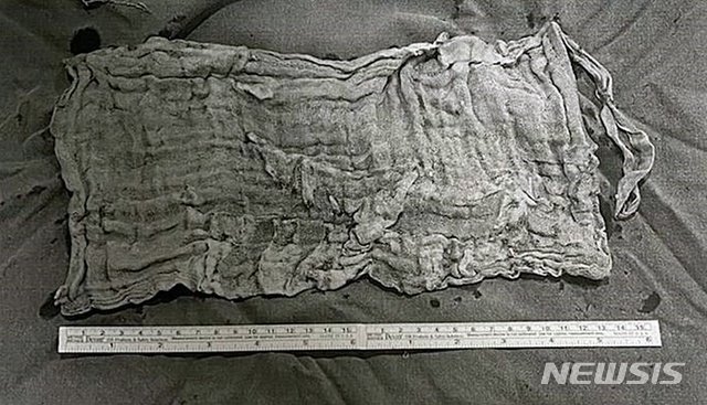 A씨는 곧바로 거즈 제거 응급수술을 받고 입원 치료를 받아왔다. 뱃속 의료용 거즈는 13~15㎝에 이르렀다.