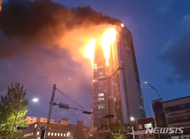 높이 113m에 이르는 33층 고층 건물이란 점도 화재 진압을 더디게 했다. 울산소방본부는 화재 초기 52m 사다리차를 동원했지만, 건물의 중간 정도까지만 물을 뿌릴 수 있었다. 72m 고가사다리차가 없었기 때문이다. 소방 관계자는 “고가사다리차는 부산소방본부에서 지원 받아 9일 오전에야 투입할 수 있었다”고 말했다.