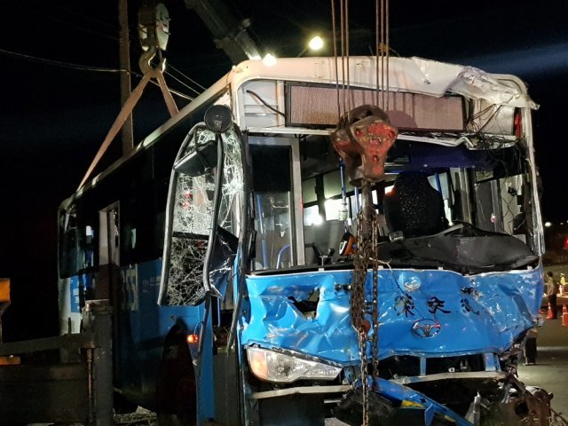 이 사고로 버스에 타고 있던 박모 씨(71·여) 등 2명과 정류장에서 버스를 기다리던 김모 씨(28)가 숨졌다. 버스 승객 등 62명이 크고 작은 부상을 입고 병원으로 옮겨져 치료를 받고 있다. 트럭에 타고 있던 운전자 2명도 크게 다쳤다.