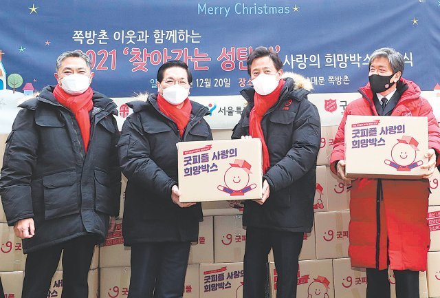 ‘굿피플’ 최경배 회장, 이영훈 목사, 오세훈 서울시장, 장만희 한국구세군 사령관(왼쪽부터)이 자원봉사에 나섰다. 여의도순복음교회
