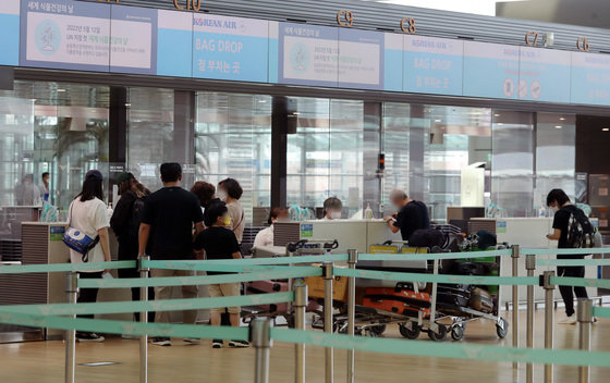 12일부터 미국에 도착하는 여행객은 신종 코로바이러스 감염증(코로나19) 음성확인서를 제출하지 않아도 된다. 사진은 이날 인천국제공항 출국장의 모습. 2022.6.12/뉴스1