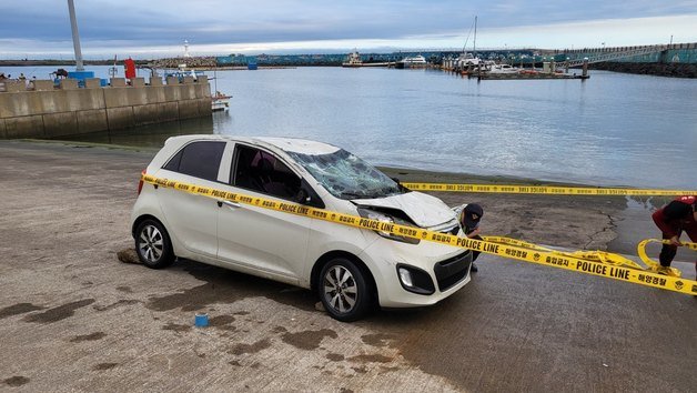 15일 서귀포해양경찰서와 제주소방안전본부에 따르면 전날 오후 3시28분쯤 제주 서귀포시 대정읍 모슬포 운진항 해상에 차량 바퀴가 보인다는 신고가 접수됐다.