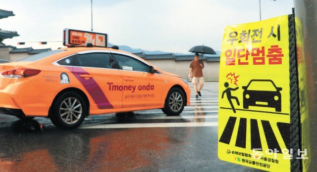 있으면 일시 정지해야 한다. ‘보행자우선도로’도 이날부터 도입된다. 김재명 기자 base@donga.com