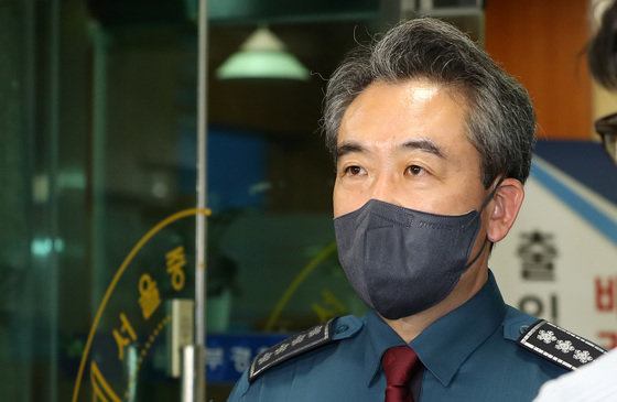 윤희근 경찰청장이 15일 서울지하철 신당역에서 여성 역무원을 살해한 A씨를 체포해 수사 중인 서울중부경찰서 현장 방문을 마친 뒤 입장을 밝히고 있다. 2022.9.15/뉴스1 ⓒ News1