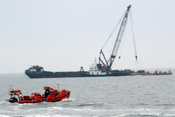 현재 청보호 선체와 예인선·크레인선은 전날 오후 소허사도와 직선거리로 약 2㎞ 떨어진 새로운 안전지대에 앵커를 내리고 인양작업 중이다. 기존 4개 와이어와 별도로 슬링바를 추가로 연결해 단단하게 고정하는 작업을 진행했고, 밤새 수차례 인양을 시도했으나 여의치 않았던 것으로 전해졌다.