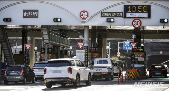 서울시는 오는 3월 17일부터 5월 16일까지 남산 1·3호 터널 혼잡통행료 2000원을 단계적으로 면제한다. 3월17일~4월16일까지 한 달간은 ‘도심에서 강남방향(한남대교)’으로 향할 때 내야하는 혼잡통행료가 우선 면제된다. 이후 4월17일~5월16일까지는 도심과 강남방향 등 양방향이 모두 면제된다.