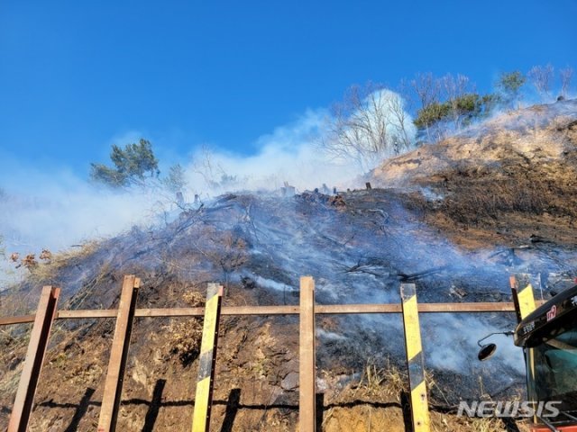 이 불로 인명피해는 발생하지 않았지만 야산 0.1ha가 소실됐다.