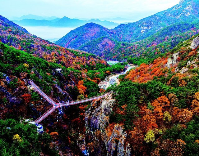 경남 거창군 가조면의 소 머리를 닮아 붙여진 우두산(해발 1046m). 9개의 봉우리로 이루어진 이 산에는 지친 몸과 마음을 치유할 수 있는 공간인 거창 항노화 힐링랜드가 있다.