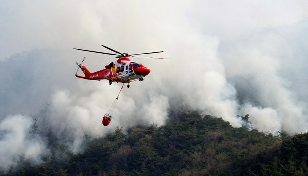 4일 오전 산불 대응 3단계로 상향된 함평군 대동면 연암리 산불현장에서 전남119소방헬기가 진화를 하기 위해 분주하게 움직이고 있다.(전라남도 제공) 2023.4.4/뉴스1