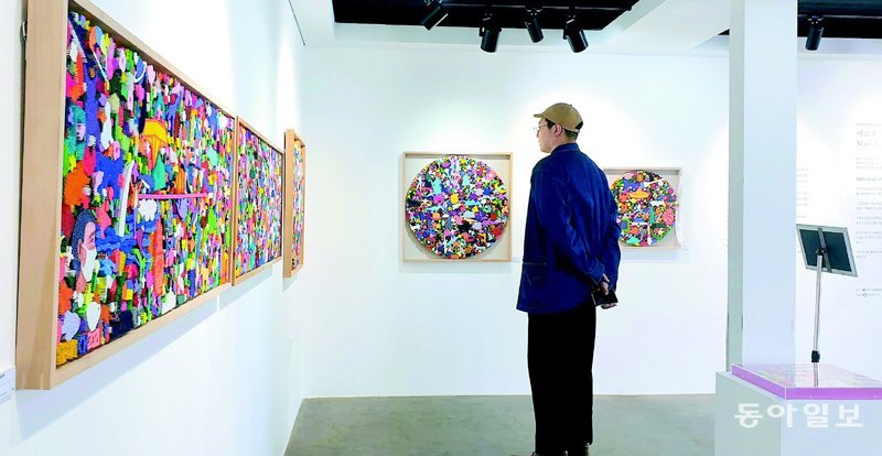 25일 한 관람객이 인천 서구 정서진에 있는 정서진아트큐브에서 기획 전시 ‘미로숲, Maze Forest’ 작품들을 감상하고 있다. 이번 전시는 다음 달 28일까지 열린다.