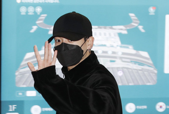 방탄소년단(BTS) 정국이 6일 새벽 LA콘서트를 성황리에 마치고 인천국제공항을 통해 입국하고 있다. 2021.12.6/뉴스1