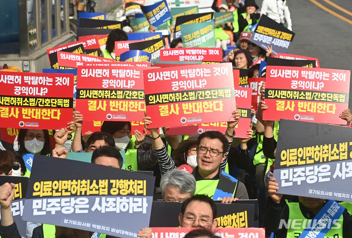 이들은 “간호법은 간호조무사의 학력을 제한하고 의사면허취소법 역시 우발적인 교통사고까지 면허를 박탈하는 과잉금지 원칙에 위배되는 위헌성이 있는 불합리한 법안”이라면서 “민주당은 두 법안을 제대로 논의조차 하지 않은 채 일방적으로 밀어붙여 강행처리했다”고 주장했다.