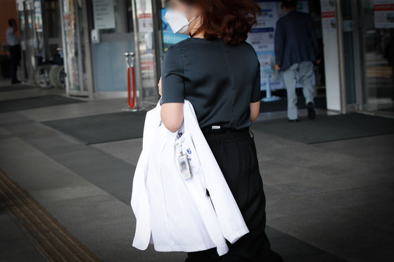 8일 서울 종로구 서울대병원에서 한 전공의가 가운을 들고 이동하고 있다. 2020.9.8. 뉴스1