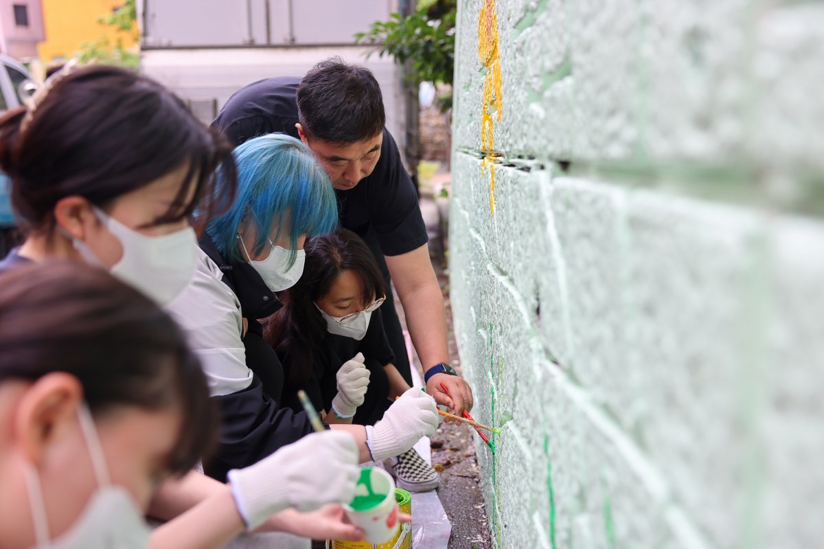 부산 경남정보대 광고동아리 ‘GAD’ 소속 학생들이 노후 주거지 환경 개선을 위해 벽화 그리기 봉사활동을 진행하고 있다. 최근 이들은 부산 사상구 괘내마을의 낡은 옹벽 약 50m에 벽화를 그려 칙칙했던 분위기를 화사하게 바꾸었다.