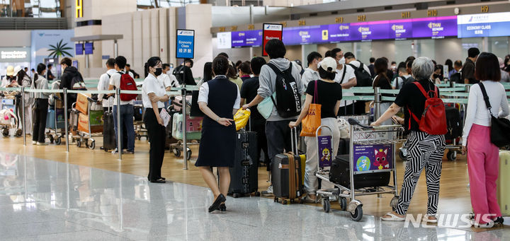 4일 인천국제공항공사에 따르면 인천공항의 지난달 여객은 453만3239명으로 하루 평균 15만1107명이 이용한 것으로 나타났다. 이는 신종 코로나바이러스 감염증(코로나19)이 발생하기 이전인 2019년 6월 602만7624명(하루평균 20만921명)의 약 75% 수준으로 회복한 것이다.