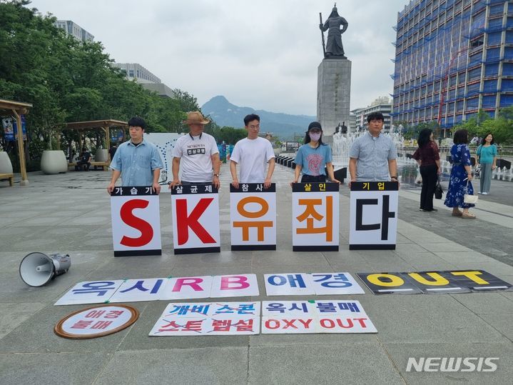 환경보건시민센터 등은 이날 낮 12시 서울 종로구의 이순신 장군상 앞에서 ‘가습기살균제 참사’ 관련 캠페인을 개최했다.