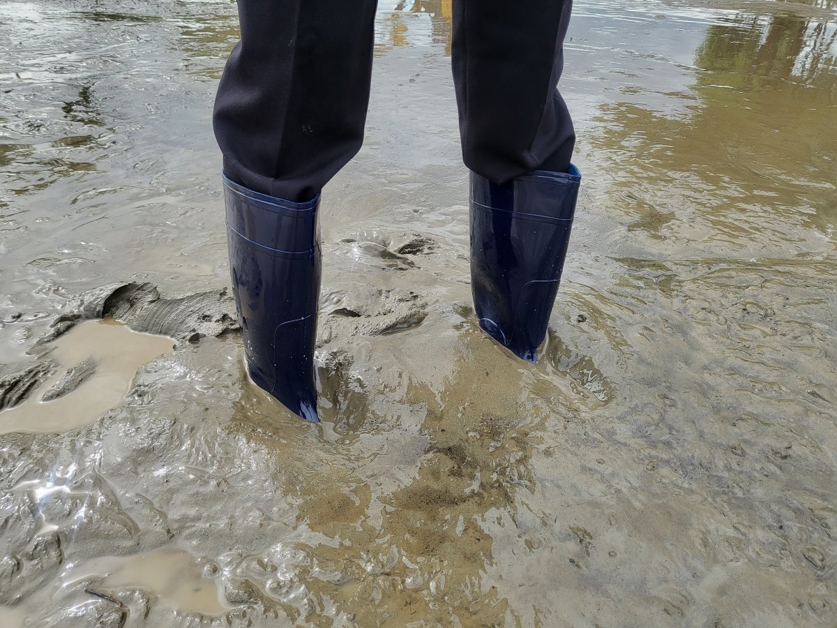 반포한강공원에는 보행로와 차도, 의자 등 곳곳에 개흙이 쌓여 있었다. 폭우로 한강 수위가 넘치면서 강 밑바닥에 있던 흙이 올라온 것이다. 기자가 장화를 신고 밟자 순식간에 종아리까지 진흙 속에 파묻혔다.