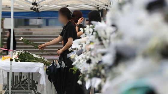 23일 서울 서초구 서이초등학교에서 교사들과 시민들이 극단적 선택으로 세상을 떠난 교사를 추모하고 있다. /뉴스1