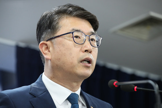 장상윤 교육부 차관이 24일 오후 서울 종로구 정부서울청사 브리핑실에서 교원의 교육활동 보호를 위한 고시 및 자치 조례 정비 관련 긴급 브리핑을 하고 있다. 2023.7.24. 뉴스1