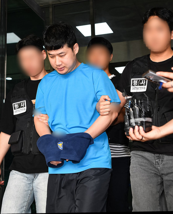 신림동 흉기난동 피의자 조선(33·남)이 28일 서울 관악경찰서에서 검찰에 구속 송치되고 있다. (공동취재) 2023.7.28/뉴스1