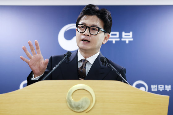 한동훈 법무부 장관이 24일 과천 법무부에서 ‘고위험 성범죄자 거주지 제한법(한국형 제시카법) 등 입법 예고 브리핑을 하고 있다. 2023.10.24 뉴스1