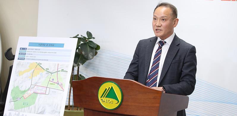 지난달 28일 대구시청 동인청사 4층 기자실에서 서경현 대구시 미래혁신정책관이 제2수성알파시티 개발 계획에 대해 발표하고 있다. 대구시 제공