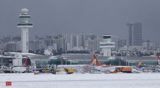 공사 측은 현재 활주로 제설 작업과 함께 항공기에 쌓인 눈을 치우는 제방빙 작업을 벌이고 있다.