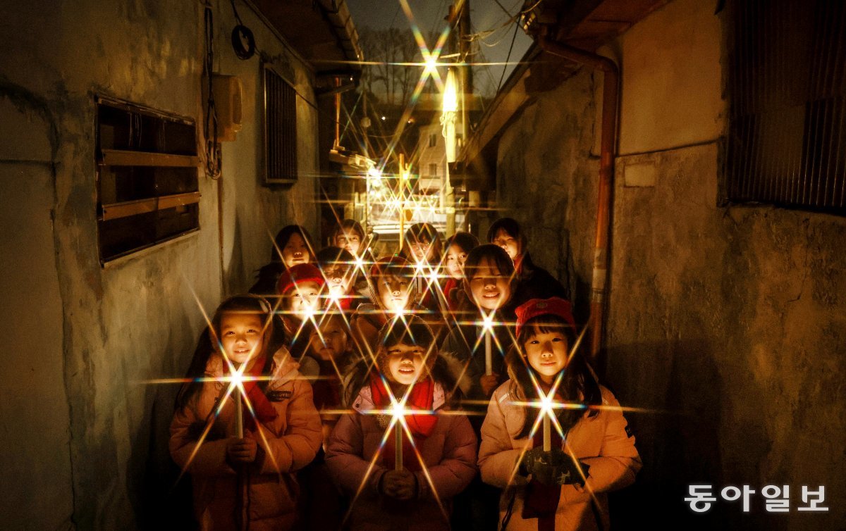 22일 오후 서울 도봉구 무수골 마을 골목에서 서울광염교회 합창단이 캐럴을 부르며 다가올 크리스마스를 축하하고 있다. 이 마을은 아직 연탄을 때는 주택들이 밀집해 있는 지역이다. 합창단은 예수 그리스도의 사랑이 어려운 이웃에게 전해지기를 바라는 마음으로 이 마을 골목에서 공연을 진행했다고 밝혔다.