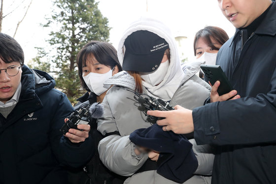 모텔에서 생후 49일 쌍둥이 자매를 숨지게 한 혐의를 받는 친모 A씨가 4일 인천 미추홀구 인천지방법원에서 열린 구속 전 피의자심문(영장실질심사)에 출석하고 있다. 2024.2.4/뉴스1 ⓒ News1