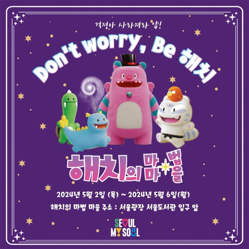 마채숙 서울시 홍보기획관은 “가정의 달 5월을 맞아 더욱 풍성하게 준비한 해치&소울프렌즈 행사에 참여해 많은 시민이 걱정을 행복으로 바꿔주는 해치의 마법을 경험하시길 바란다”며 “앞으로도 해치&소울프렌즈가, 건강하고, 펀(FUN)하고, 매력 넘치는 서울의 상징 캐릭터로서 역할을 할 수 있도록 시민들에게 가깝게 다가가겠다”고 말했다.