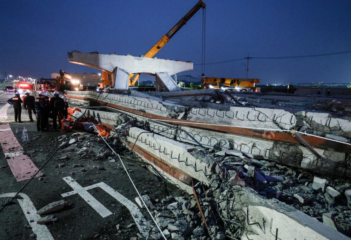 해당 교각은 길이 54.9m, 높이 2.8m 크기 거더 9개가 올라가는 구조다. 사고 당시 현장에서는 크레인 2대가 거더 양 끝을 잡아 8m 높이 교각 위에 올리는 작업이 이뤄지고 있었다.