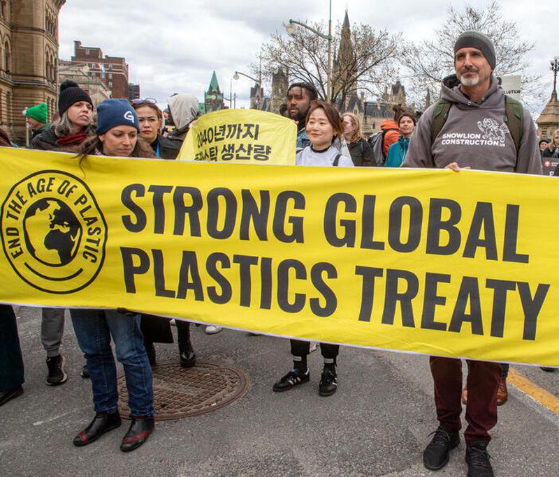 지난달 21일 국제 플라스틱 협약을 위한 제4차 정부 간 협상위원회(INC)를 앞두고 환경 시민단체들이 강력한 플라스틱 협약 체결을 촉구하며 회의가 열리는 캐나다 오타와를 행진하고 있다. 그린피스 제공