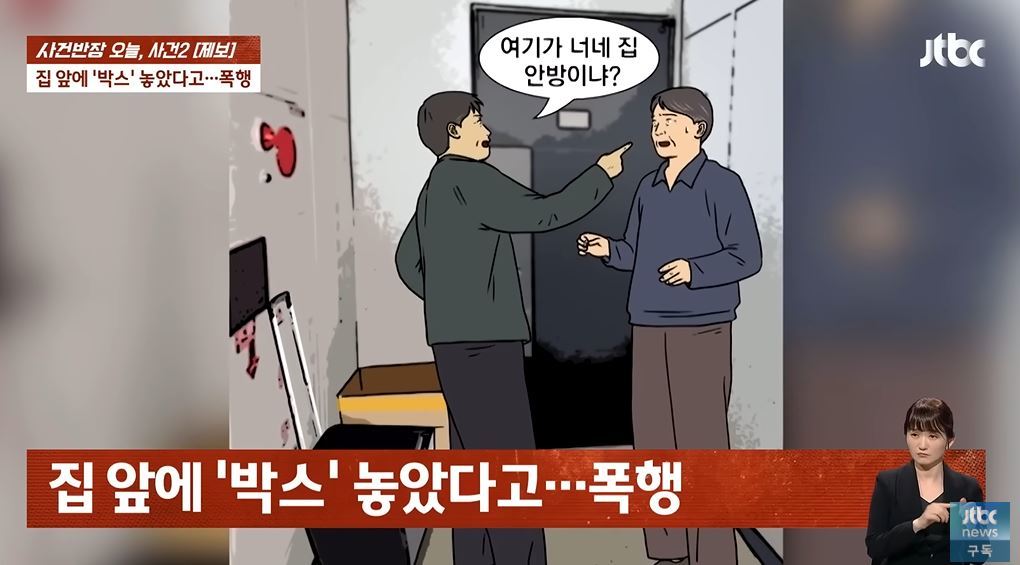 아파트 현관문 앞에 박스를 뒀다는 이유로 이웃 남성에게 폭행을 당했다는 가족의 사연이 공개됐다.