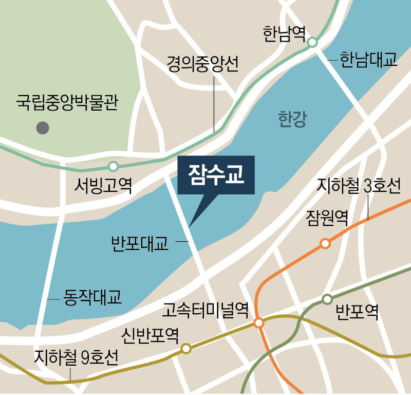 잠수교 전면 보행화 사업은 오세훈 서울시장의 ‘그레이트 한강 프로젝트’ 핵심 사업 중 하나다. 반포대교 하부에 1976년 준공한 잠수교는 용산구 서빙고동과 서초구 반포동을 연결하는 다리다. 폭 18m 길이 795m로 한강 다리 중 가장 짧고 높이가 낮아 걸어서 접근하기 좋다.