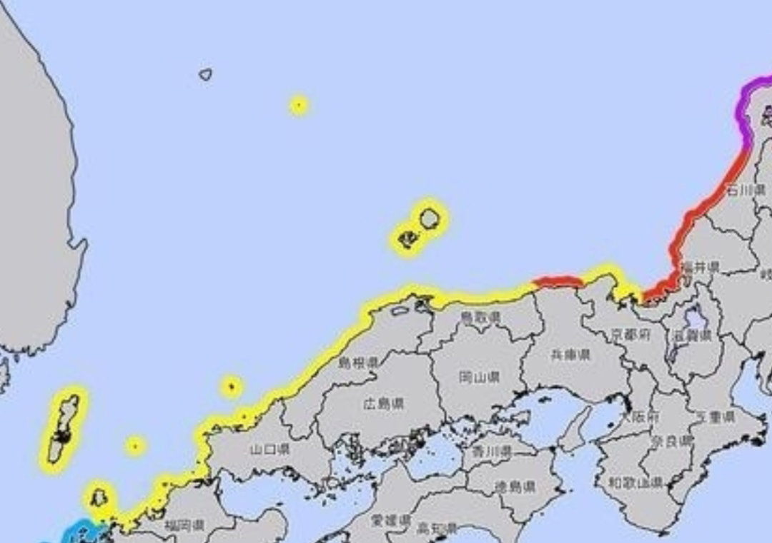해당 지도에서 강조된 부분 등은 올해 초 일본 이시카와현 지역에서 규모 7.6의 강진이 발생했을 때 일본 기상청이 발표한 자료다.
