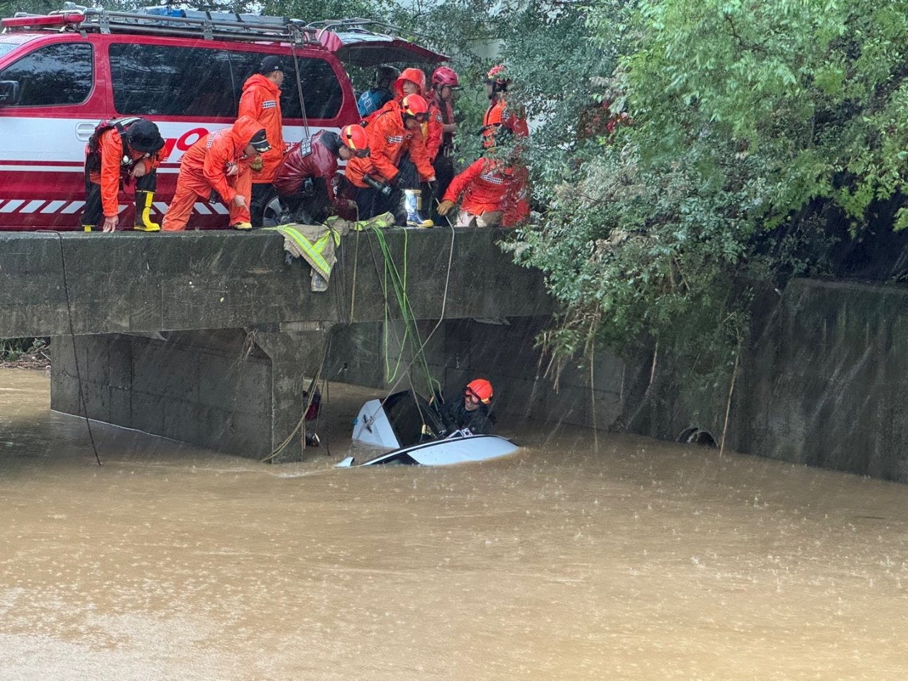 경기 김포시 고촌읍 대보천 인근에선 낮 12시 14분경 “차가 떠내려가는데 문이 열리지 않는다”는 119 신고가 접수됐다. 출동한 경찰과 소방당국은 수색 끝에 실종 차량을 발견했으나, 80대 남성으로 추정되는 운전자는 숨진 채 발견됐다. 같은 시간 고촌읍의 한 유치원에 빗물이 들어차 원생 10여 명이 한때 고립되기도 했다.