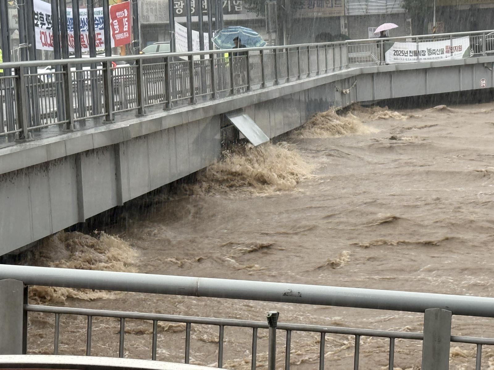 13일 오전 0시부터 14일 오전 10시까지 경기 파주에는 누적 317.5mm의 비가 쏟아졌다. 13일 시간당 150mm 비가 쏟아졌던 인천 옹진 덕적북리 누적 강수량은 288.6mm, 강원 철원 동송에도 230mm가 내렸다. 중부지방을 중심으로 형성된 정체전선에서 중규모 저기압이 발달하며 이 지역에 크기가 작은 비구름이 강하게 발달했다.