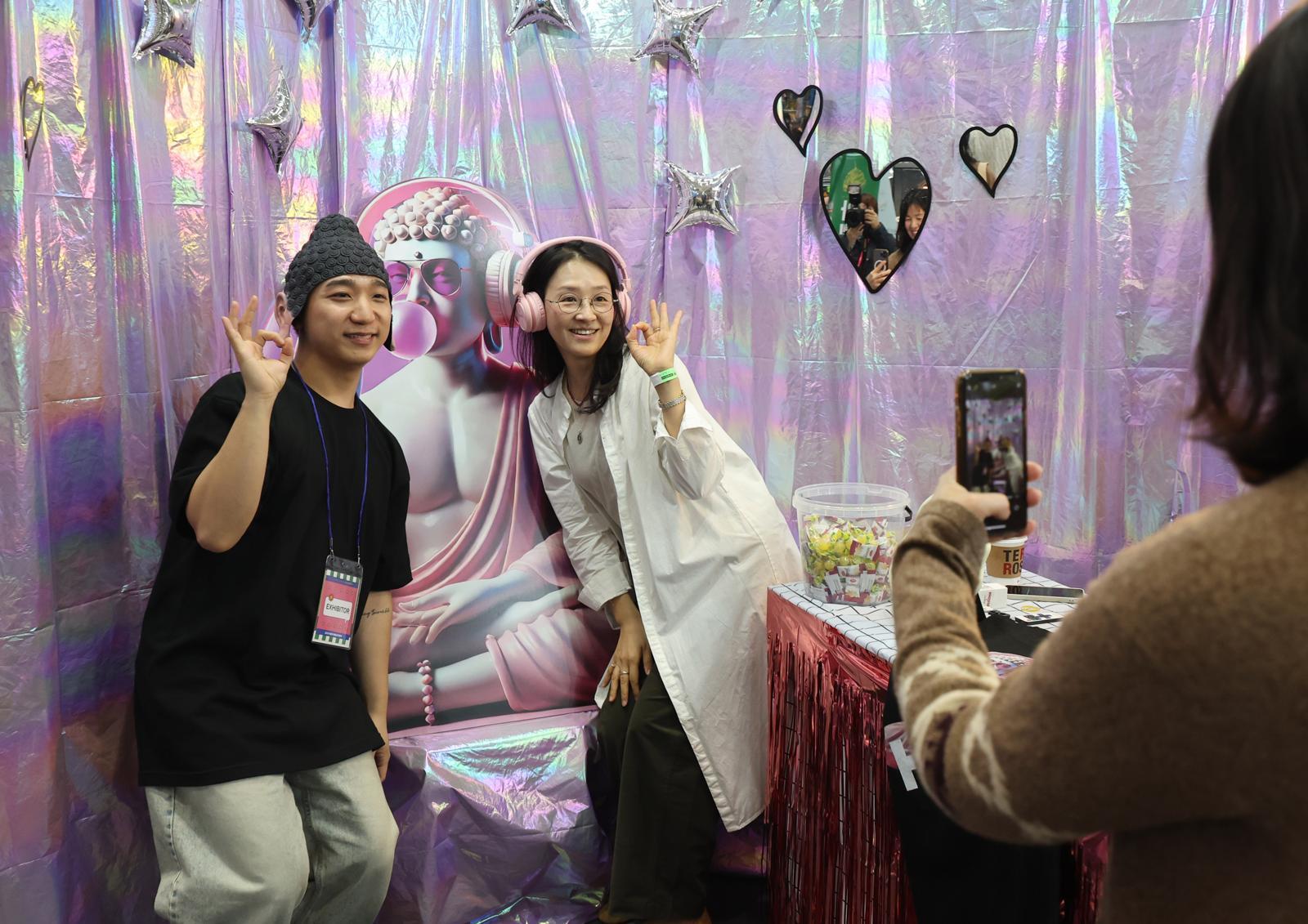 ‘2025서울국제불교박람회’와 ‘제13회 붓다아트페어’에서 파티인붓다 부스를 찾은 젊은이들이 기념 촬영을 하고 있다. 뉴스1