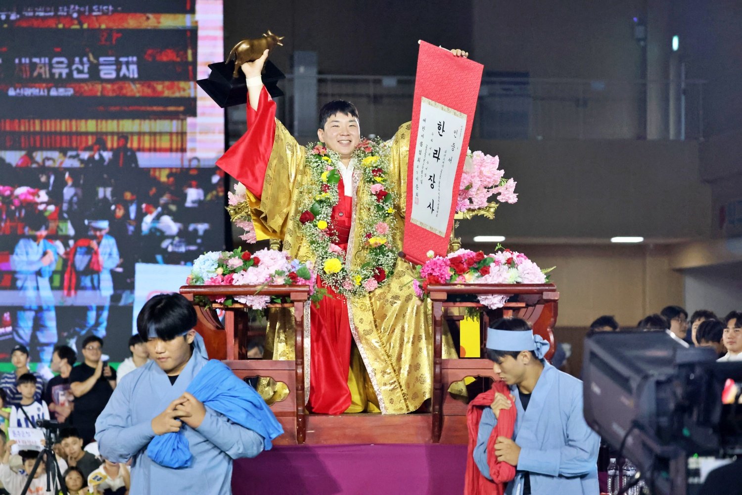 울주군에 따르면 김무호는 이날 5판 3선승제로 펼쳐진 태백장사(105㎏ 이하) 결정전에서 박민교(용인특례시청)을 꺾고 우승을 차지하며 올 시즌 2관왕(25 유성대회, 25 추석대회)과 함께 3년 연속 추석 장사에 올랐다.