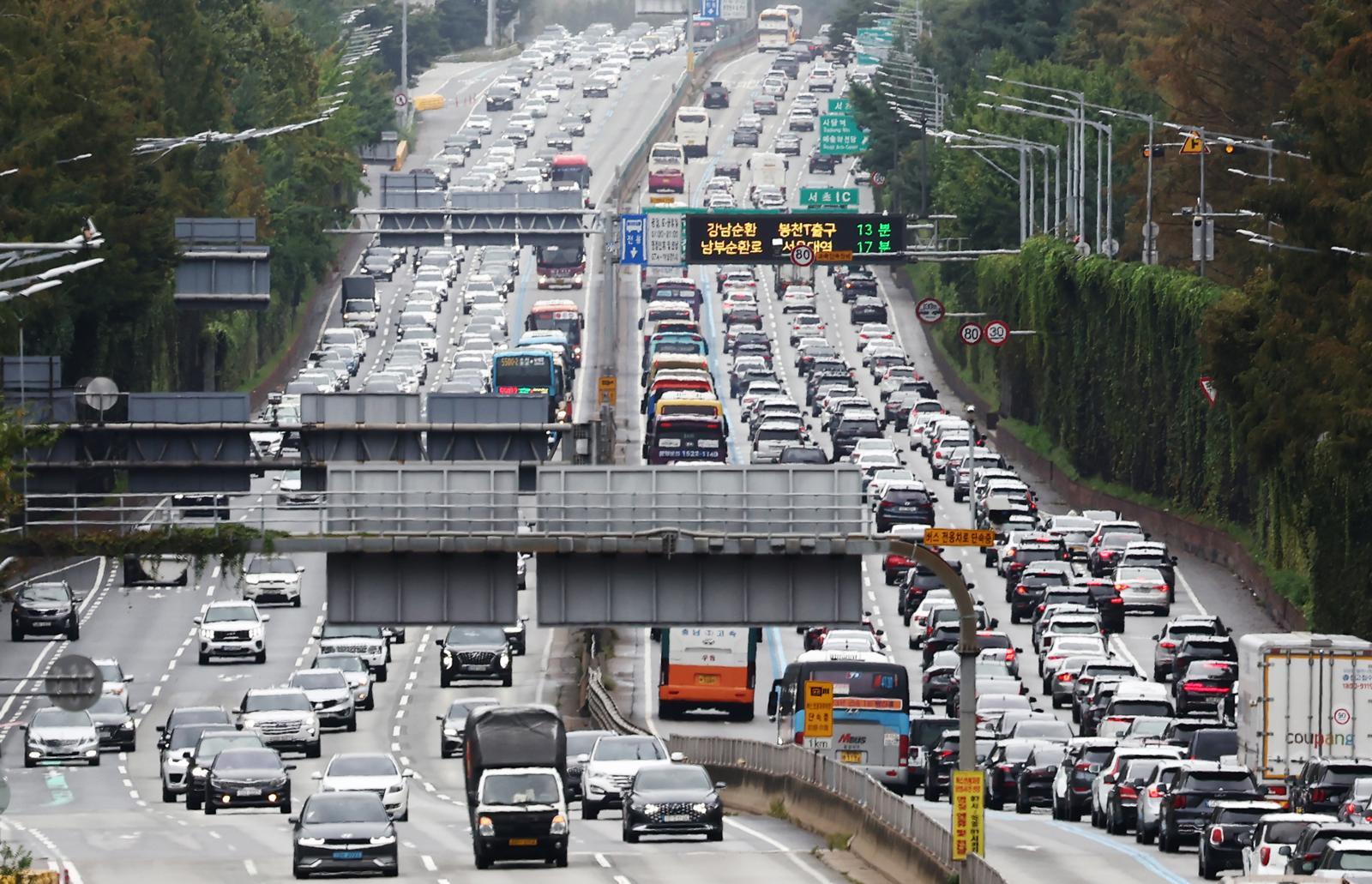한국도로공사에 따르면 이날 오전 9시 기준 각 도시 요금소에서 서울요금소까지 걸리는 예상 시간은 부산 6시간 40분, 목포 5시간 40분, 울산 5시간 30분, 대구 4시간 50분, 광주 4시간 10분, 강릉 3시간, 양양 2시간, 대전 1시간 50분이다.