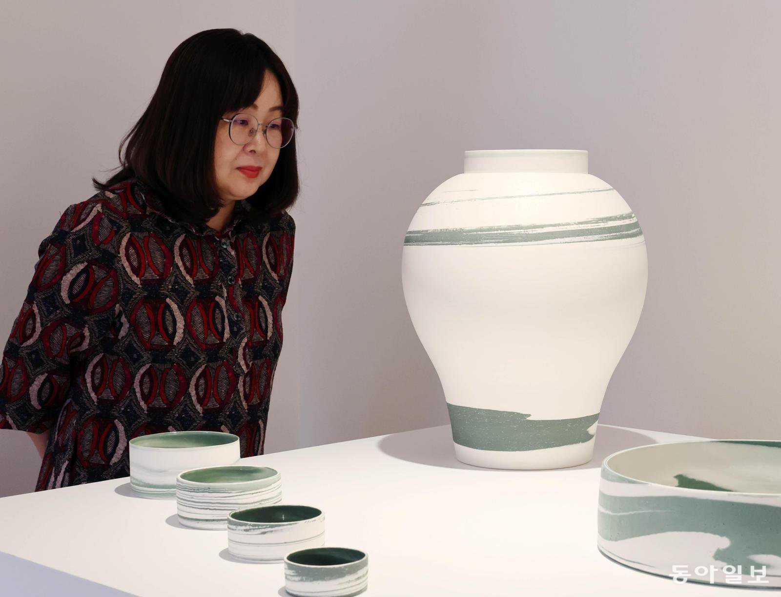 13일 서울 은평구 한옥마을에 있는 삼각산금암미술관에서 한 관람객이 도자기 장식품을 살펴보고 있다. 이곳에서는 ‘은평 공예 공모전 선정작 전시회’가 열려 안수빈(바느질), 이유빈(도자공예), 조수정(금속공예) 작가의 작품이 전시됐다. 전시는 무료로 관람할 수 있으며, 11월 2일까지 이어진다.